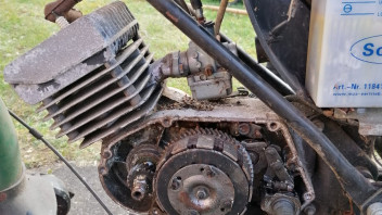 Soo, habe den Deckel am Nachmittag geöffnet und festgestellt das anstelle von Getriebeöl Wasser drin war. Also ist alles festgegammelt und rostig. Habe den Motor ausgebaut und den Zylinderkopf abgenommen, der Brennraum ist noch Tippitoppi. Also wird die Tage alles fein zerlegt und saubergemacht, ich denke das das noch geht.