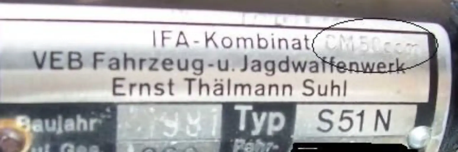 Der obere Bereich fehlt, wo bei Exportfahrzeugen manchmal 50ccm eingeschlagen war.