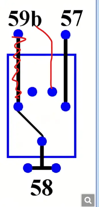 - auf Klemme 59b vom Zündschloss hängt die Tachobeleuchtung und kurioser Weise leuchtet die beim Hupen