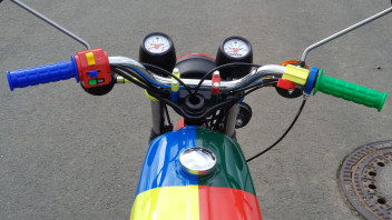 Ansonsten ist nahezu alles erneuert am Fahrzeug....Herzkasten, Telegabel, Blechteile, Bowdenzüge, Vergaser, komplette Elektrik, Räder, Reifen, Auspuff usw.