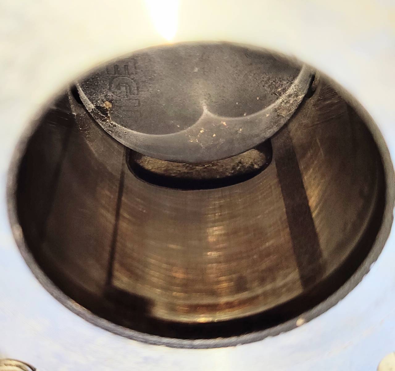 Ich hatte den NPC jetzt 5 Tage drauf und bin ca. 120km gefahren. Seit ca. 2 Tagen hat die Garnitur im oberen Drehzahlbereich bei Vollgas ein Knistern von sich gegeben, Leistung war aber noch da. Sobald man vom Gas gegangen ist, war es weg, bis es dann ab einer gewissen Drehzahl beim erneuten Beschleunigen wieder auftrat. Wenn man im Stand Gas gibt, hört man davon aber nichts. Dann habe ich den Zylinderkopf gezogen, und es sah wie auf den angehängten Bildern aus. Gut sichtbare Spuren im Zylinder. Von einem Klemmer habe ich beim Fahren jedoch nichts mitbekommen. Fühlbar sind die Spuren mit dem Fingernagel nicht. Den Kolben habe ich mir noch nicht angeschaut, denn der Auspuff inkl. Krümmer ist noch angebaut, werde ich am Wochenende machen.