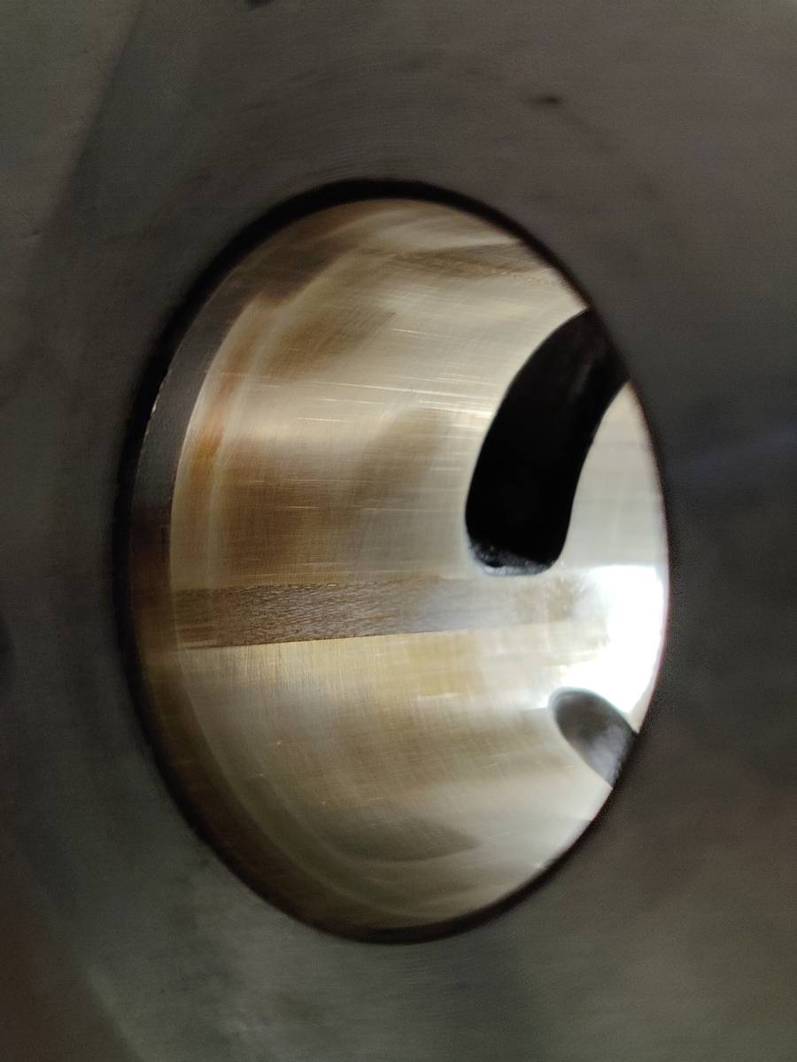 • Bild 5908 - dort sieht man sehr schön, dass das Öl auf der Laufbahn quasi verglast ist, was bei extrem hohen Temperaturen passiert. Davon ausgehend, muss sich der Kolben entsprechend ausdehnen und so kommen auch die Klemmspuren auf der höhe der Stehbolzen zustande.