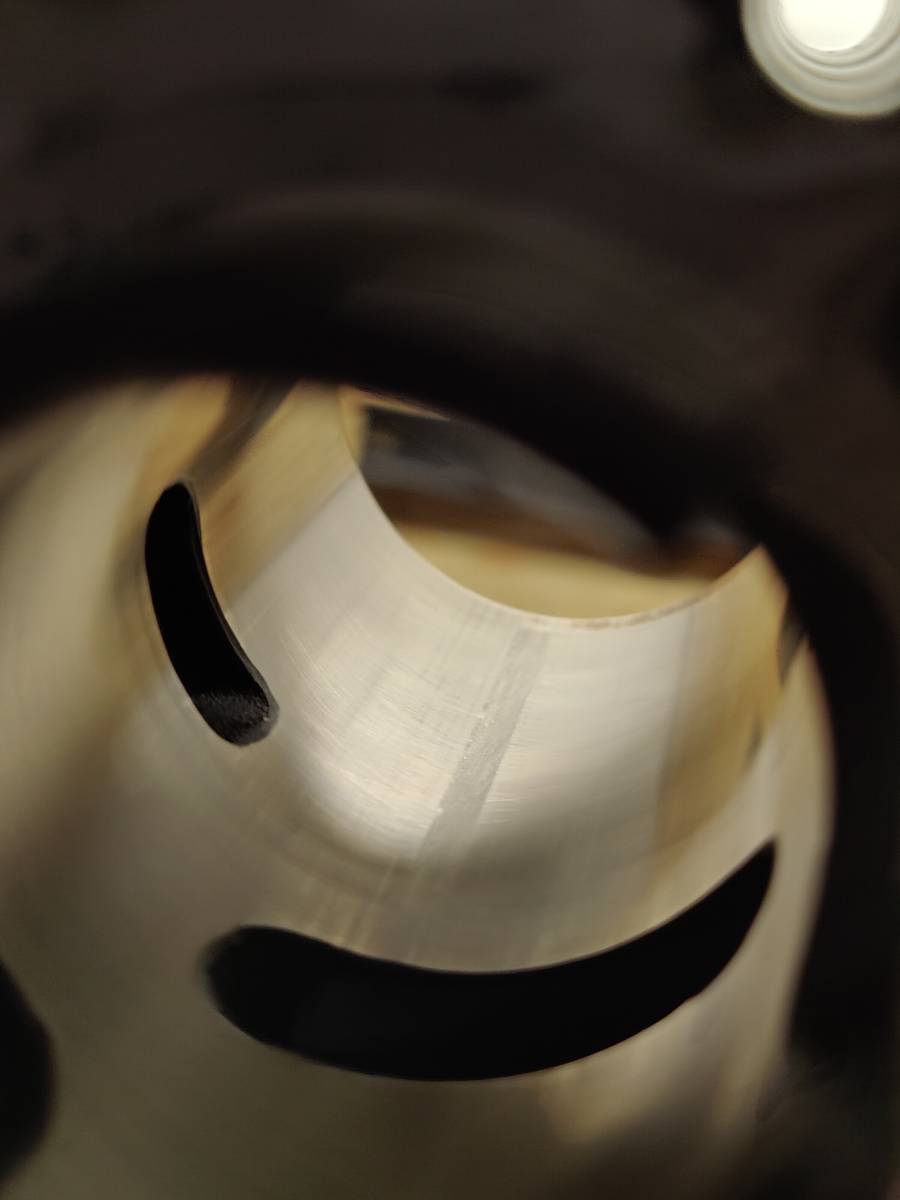 Auf den Bildern ist eine verschmierung der Beschichtung durch eine Punktuelle überhitzung zu sehen. Das Passiert bei diesen Zylindern gern wenn die direkt ab den ersten metern Last sehen. Verhindern kann man dies bspw durch mehrfaches warmlaufen lassen und abkühlen bei der erst Inbetriebnahme. Schlimm es es allerdings auch nicht, der Mangel ist mehr optischer natur als alles andere.