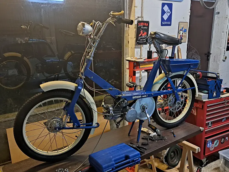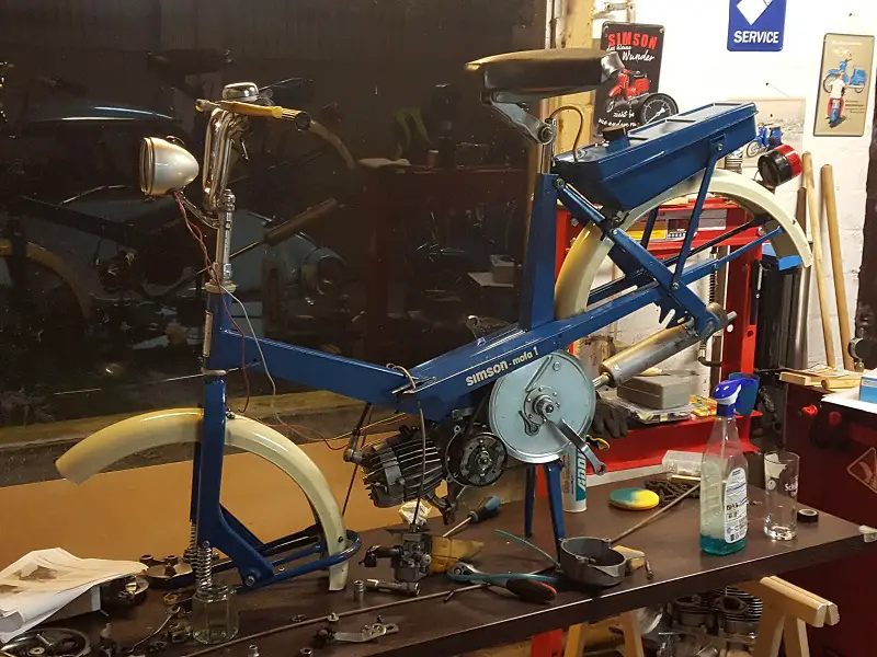 Das Mofa wird nun in seine Einzelteile zerlegt, gereinigt und nur das ernuert oder aufgearbeitet was wirklich sein muss.