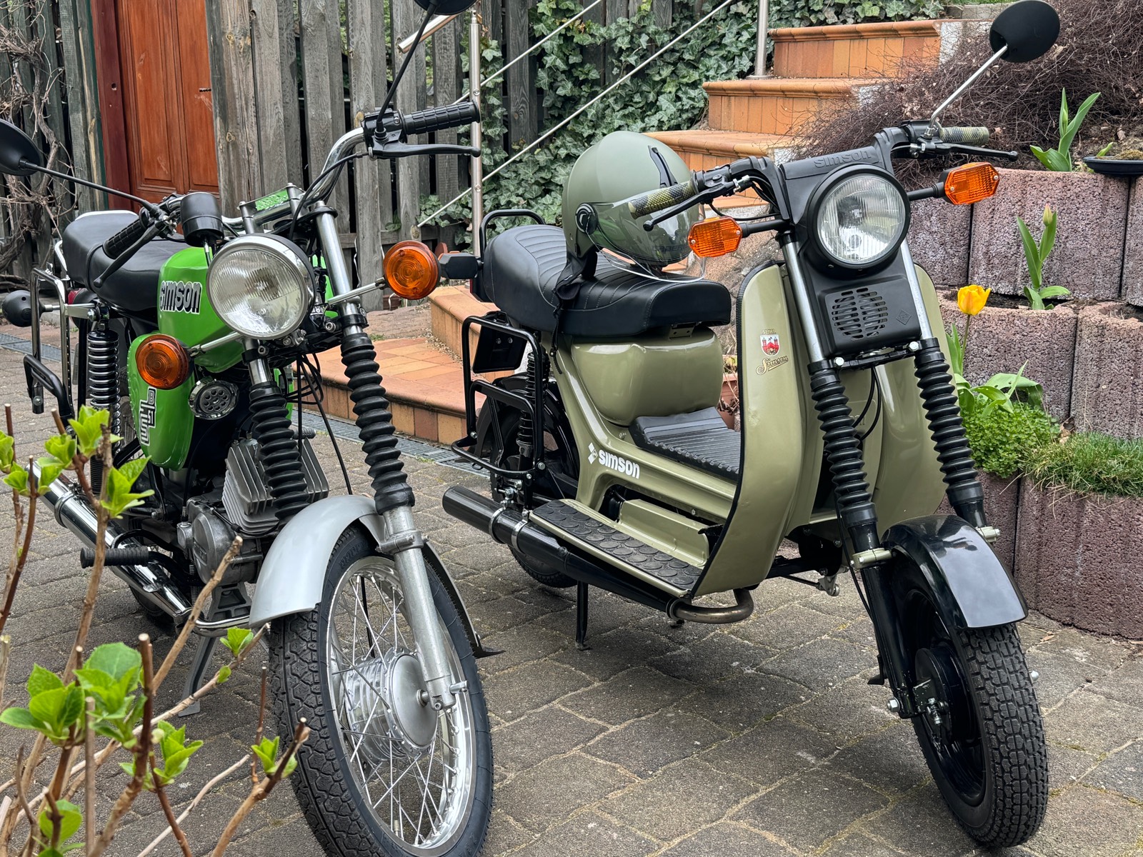• Hallo, ich bin der Tomas, 54 und ich präsentiere stolz meine 86er S51, von meinem Jugendweihe Geld gekauft, seit dem immer in meinem Besitz. Bis auf 2 Wochen, da wurde sie gestohlen und 14 Tage später von der Rennleitung wiedergefunden! Der andere Hobel ist ein 90er Auslandsrückkehrer der es mittlerweile zu nem deutschen 60er Pass geschafft hat, komplett renoviert wartet er auf seinen Motor, der gerade notoperiert wird! Alles wird gut!