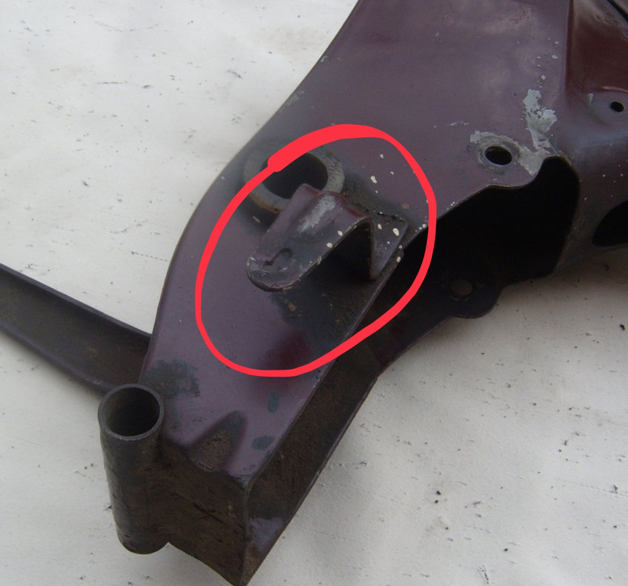 Wie kann das eigentlich sein und wo hatte man sich seinerzeit gedacht, wird die Feder eingehängt? Foto zeigt diesen Winkel am Rahmen.