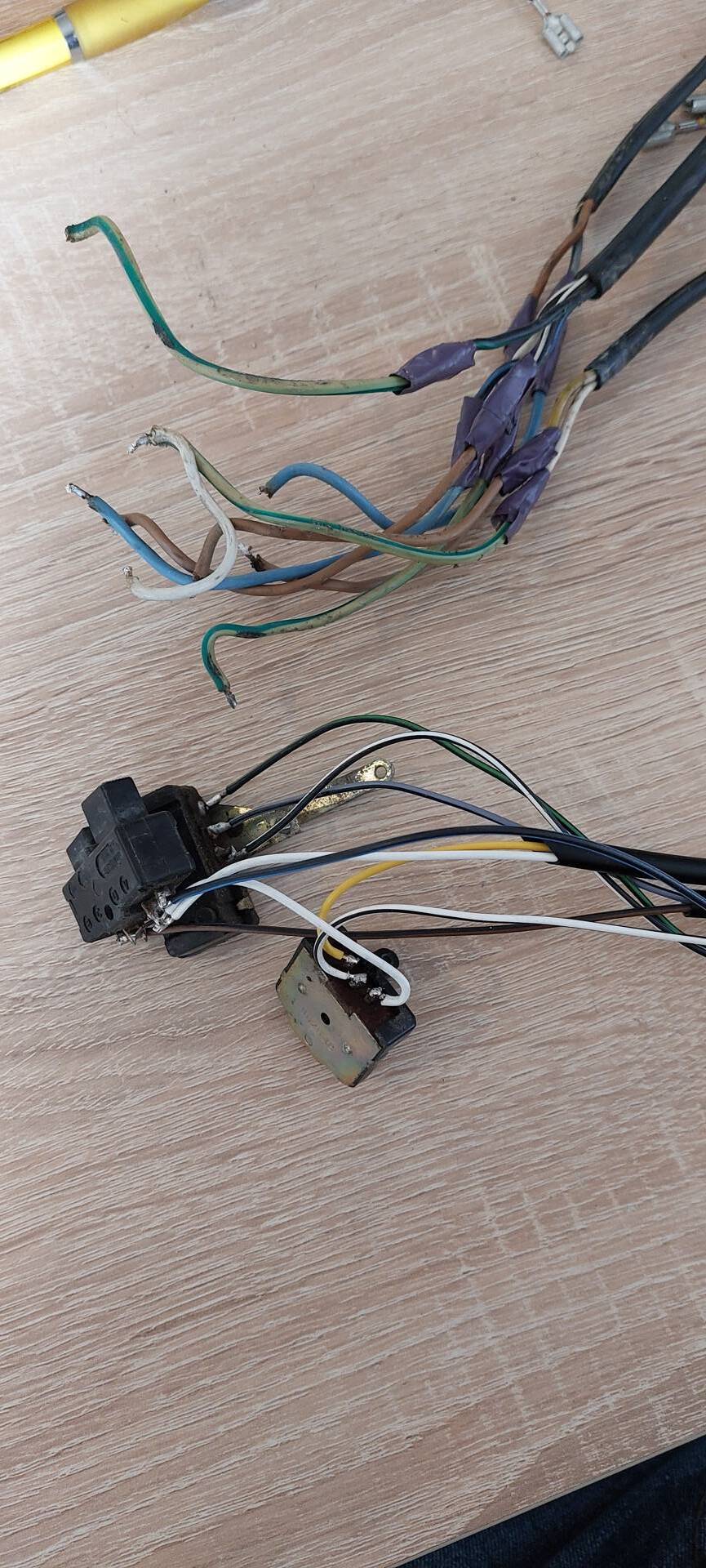 Mittlerweile hab ich die Rahmenteile gereinigt und einiges aufgearbeitet. Neue Schwinge und sehr gute DDR Federbeine sind montiert. Die Sitzbank habe ich mit Rep-Blech instandgesetzt und frisch bezogen. Gepäckträger und Rückleuchten sind ebenfalls aufgearbeitet und schon angeschlossen. Einen guten Satz Kompletträder habe ich günstig aufgetan sowie die silber gesprühten Bremstrommeln wieder original aufgearbeitet. Heute habe ich dann den gestückelten Multifunktionsschalterkabelbaum durch einen neuen ersetzt.