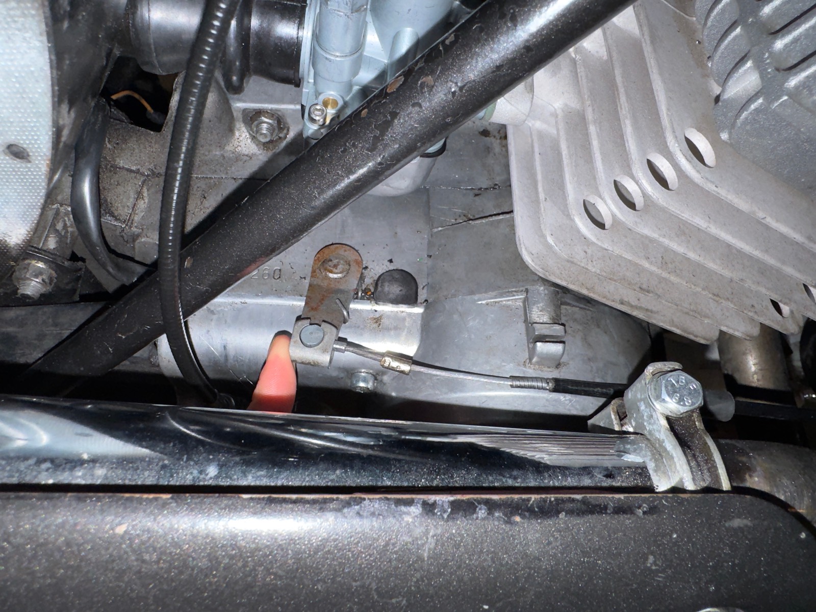 Es wirtk so, also ob diese Schwarze Hülle vom Kupplungszug jetzt zu lang ist, und das stück was ohne Hülle zu kurz ist.