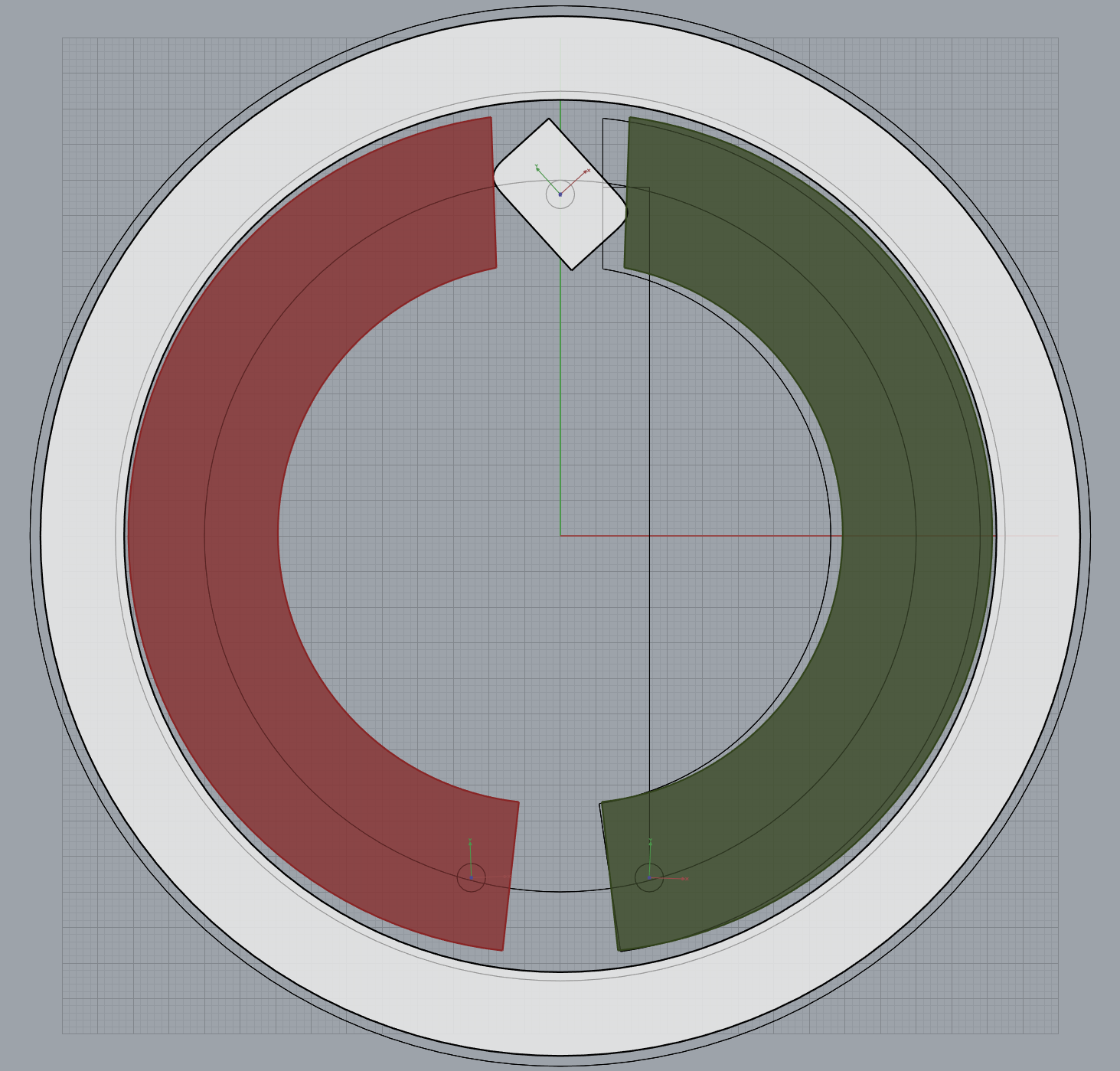 Ich habe das Ganze mal in der richtigen Größe im CAD aufgebaut und hier sieht man, wieviel vom Bremsnocken nur weg müsste, wenn man will, dass beide Backen gleich ausgelenkt werden. An dieser Stelle sind es gerade mal 0.17mm die vom Nocken weg müssten.