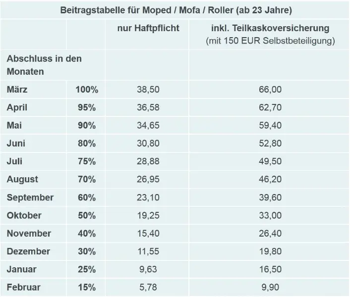 Versicherungstarife für Scooter/Roller/Mofa/Moped ab 01.03.2014 im Vergleich