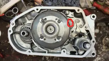 Wenn dann die von Marvo beschriebene Mutter nicht lose ist, dann wird dir trotzdem nix anderes übrig bleiben als den linken motorseitendeckel herunterzunehmen und nachzusehen. Mach am besten möglichst viele Fotos von allen Bauteilen. Dann können wir dir unter Umständen sagen was kaputt ist.