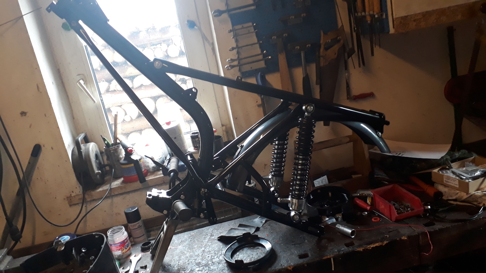 Die paar Bilder jetzt wurden bei sehr schlechten Lichtverhältnisse gemacht aber ich hoffe man erkennt noch was.Der Tank und die Sitzbank sind nur draufgelegt zum sehen wie es aussieht.