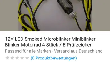Habe letztens erst für 16 Euros 4 E-zugelassene LED-Micro-Blinker (für meinen elektrischen Roller) geschossen... (gut, geht natürlich auch billiger, aber das Design: http://www.ebay.de/itm/4x-Moto…ksid=p2060353.m2749.l2649) => auch wenn 1 Led im Text steht, es sind jedoch 2 SMD-LEDs pro Blinker verbaut.