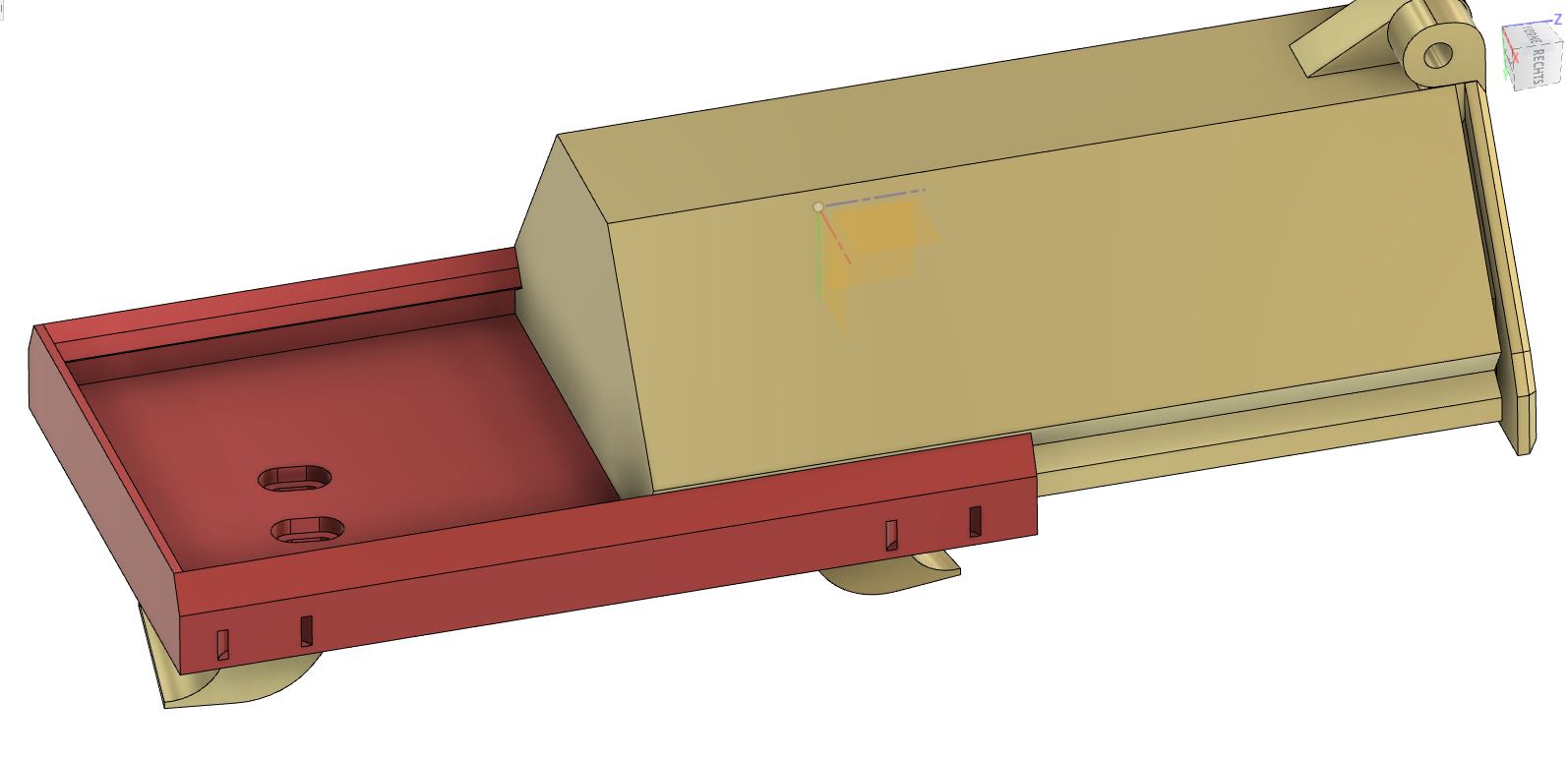Denke das Scharnier kommt noch weg, Beim ausprobieren ist mir nämlich aufgefallen, dass man das nicht benötigt - da die ganze Schublade ja herausgezogen werden kann.