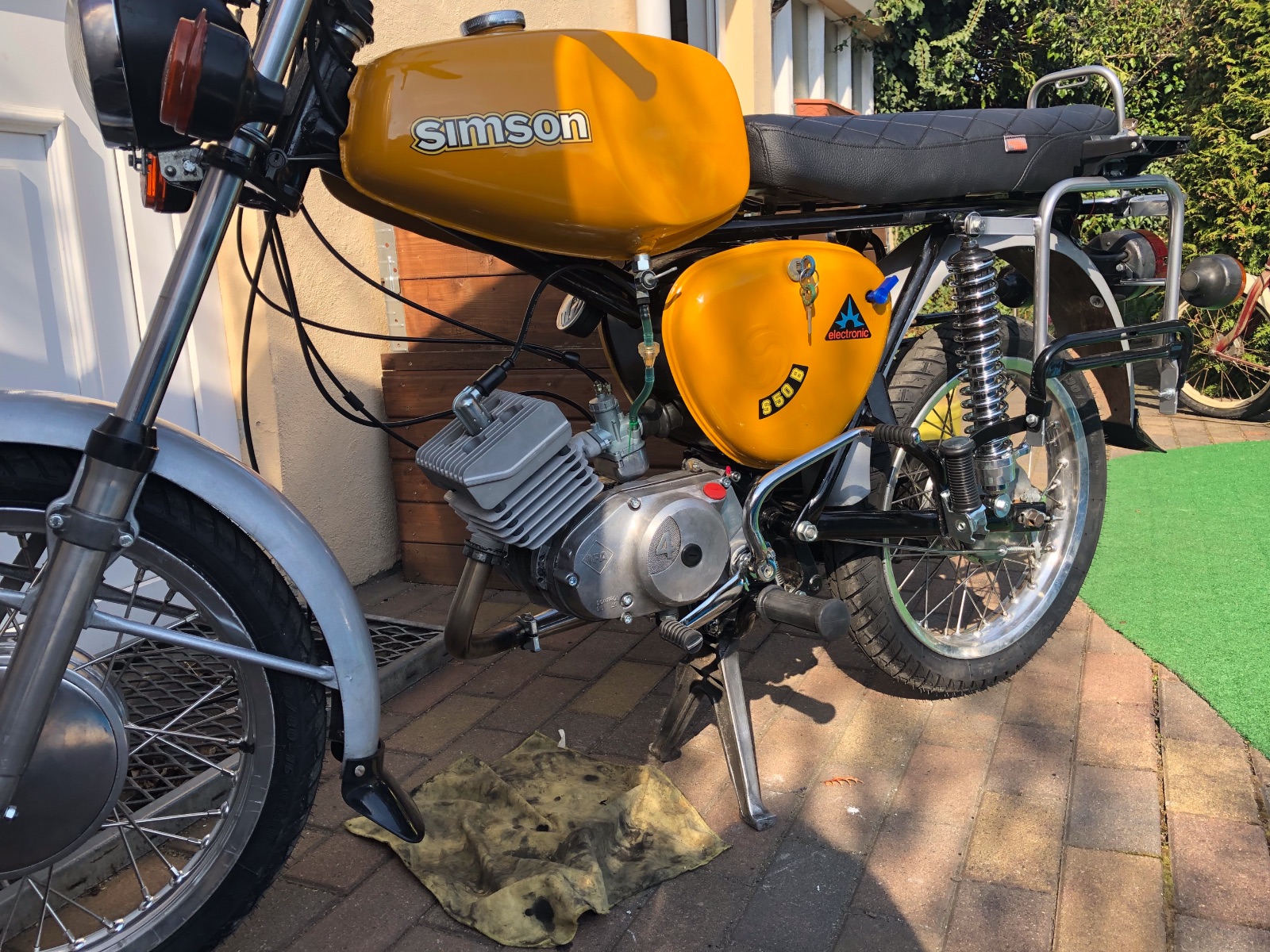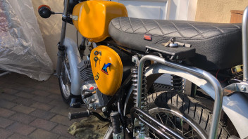 Der Auspuff wird noch gegen einen Edelstahl mit 32mm Krümmer getauscht sobald Sachsenmoped diesen im Programm hat.