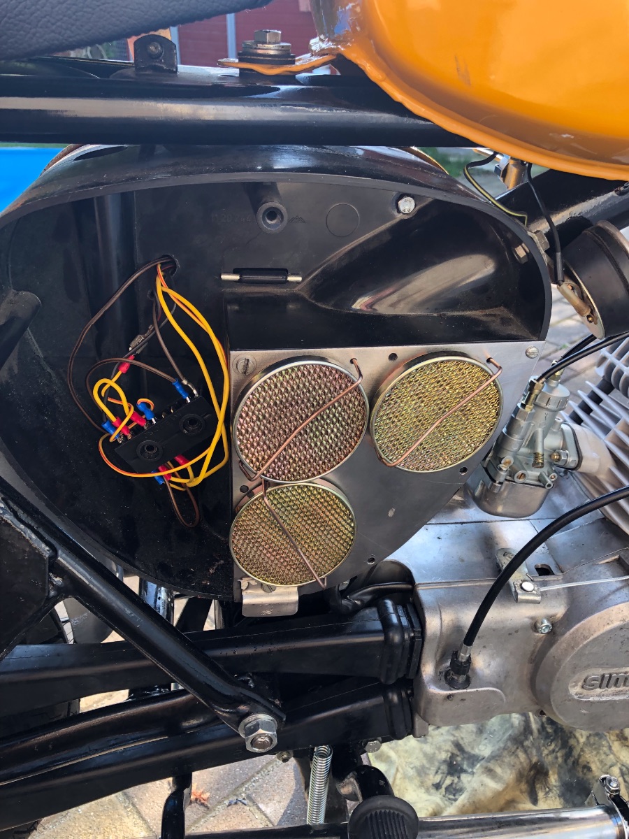 Wenn man da noch "blindstopfen" für baut, könnte man den Luftdurchfluss so ja auch bei Bedarf verringern.Baue mir auch gerade meine S50 in Saharabraun auf, nur mit M53 Motor und Knieblech.