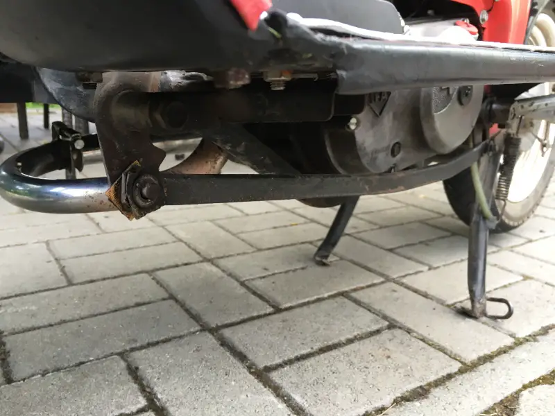 Dort wo auf dem Bild das Werkzeug (zum Einstellen der Schaltung) angesetzt wurde sollte ein Mutter sitzen wenn die nicht fest ist gibt es auch oft Probleme.
