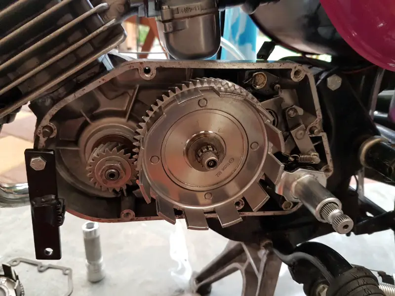 Das Getriebeöl wurde gewechselt beim Wechsel des Primärritzels und Kupplungskorbes. Die Simmerringe sind dicht.