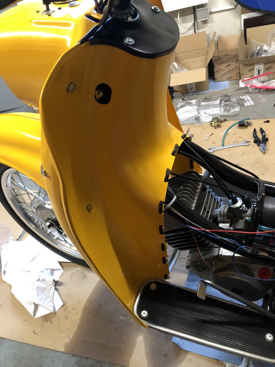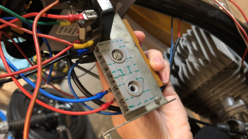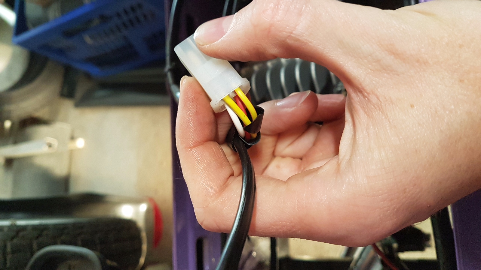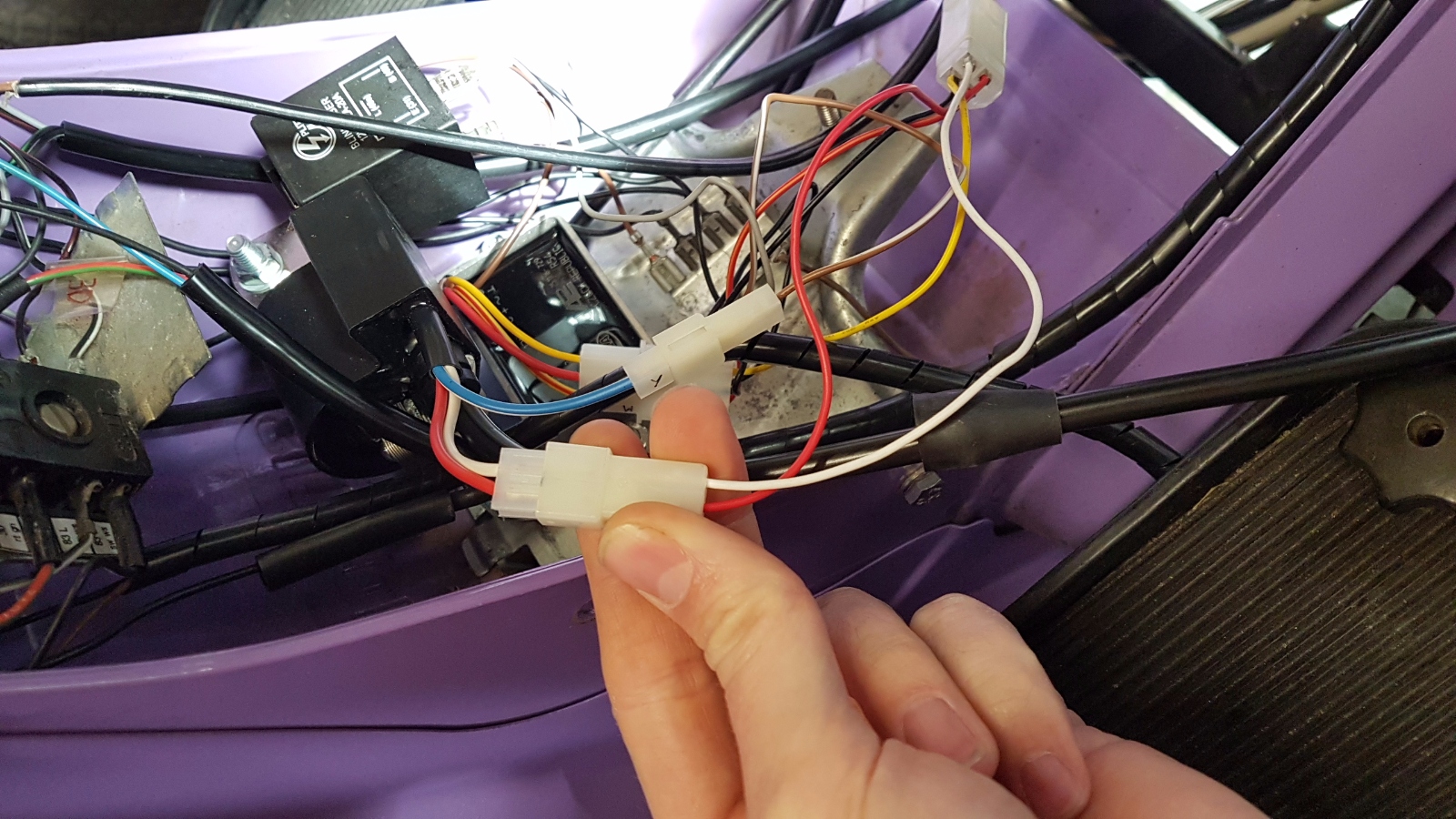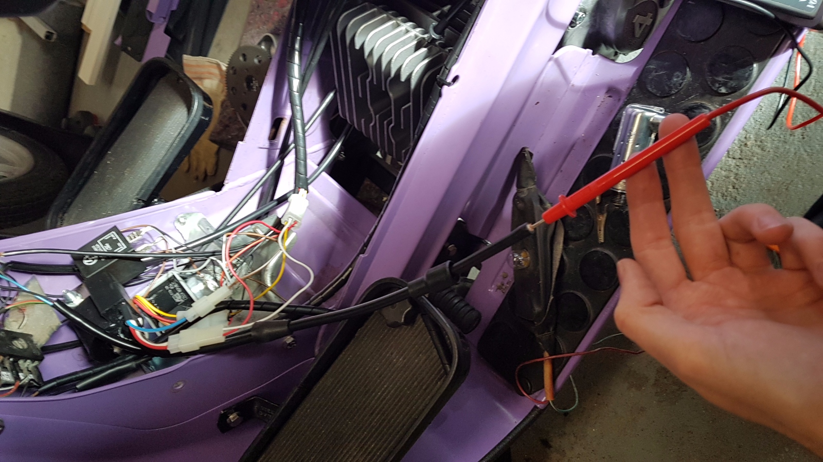 Wenn ich mit einer Prüflampe die vier Stromführende Kabel von der Grundplatte im Motor prüfe, also Kerze raus und am Kickstarter klicke, hat das weiße und das rote keinen Strom (Prüflampe aus). Die anderen beiden - gelb und gelb/rot haben Strom.