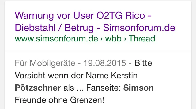Jedenfalls passt gut auf falls jemand ein ähnliches Problem hat... Sollte dieser Name aus der Region Bayern / Hof dann auch auftauchen sollte das euch zu denken geben. Überlegt euch dann ob ihr den Kauf tätigt oder nicht.