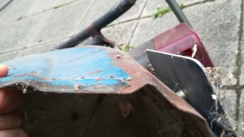 Der Motor lief tatsächlich noch, war aber in nicht so gutem Zustand. Das Motorgehäuse außen und innen im Bereich der Zündung war mit ner dicken, klebrigen schwarzen Schicht überzogen, deren Entfernung mich so einige Nerven gekostet hat. Hat aber funktioniert. Für das Ölablassen hatte ich mir im Baumarkt extra noch so nen Kanister geholt nur um dann festzustellen dass gar keins drin war