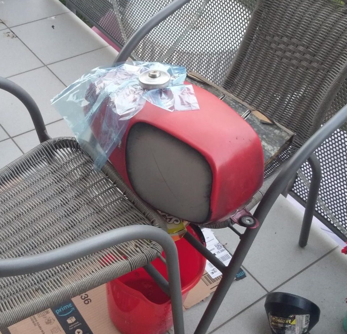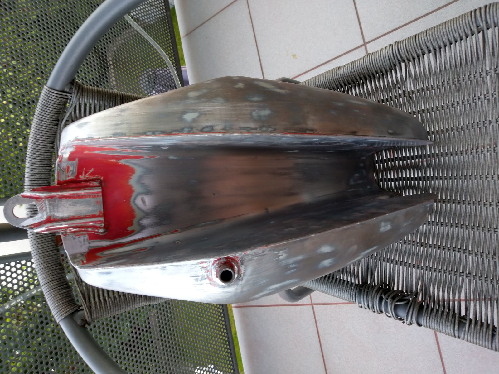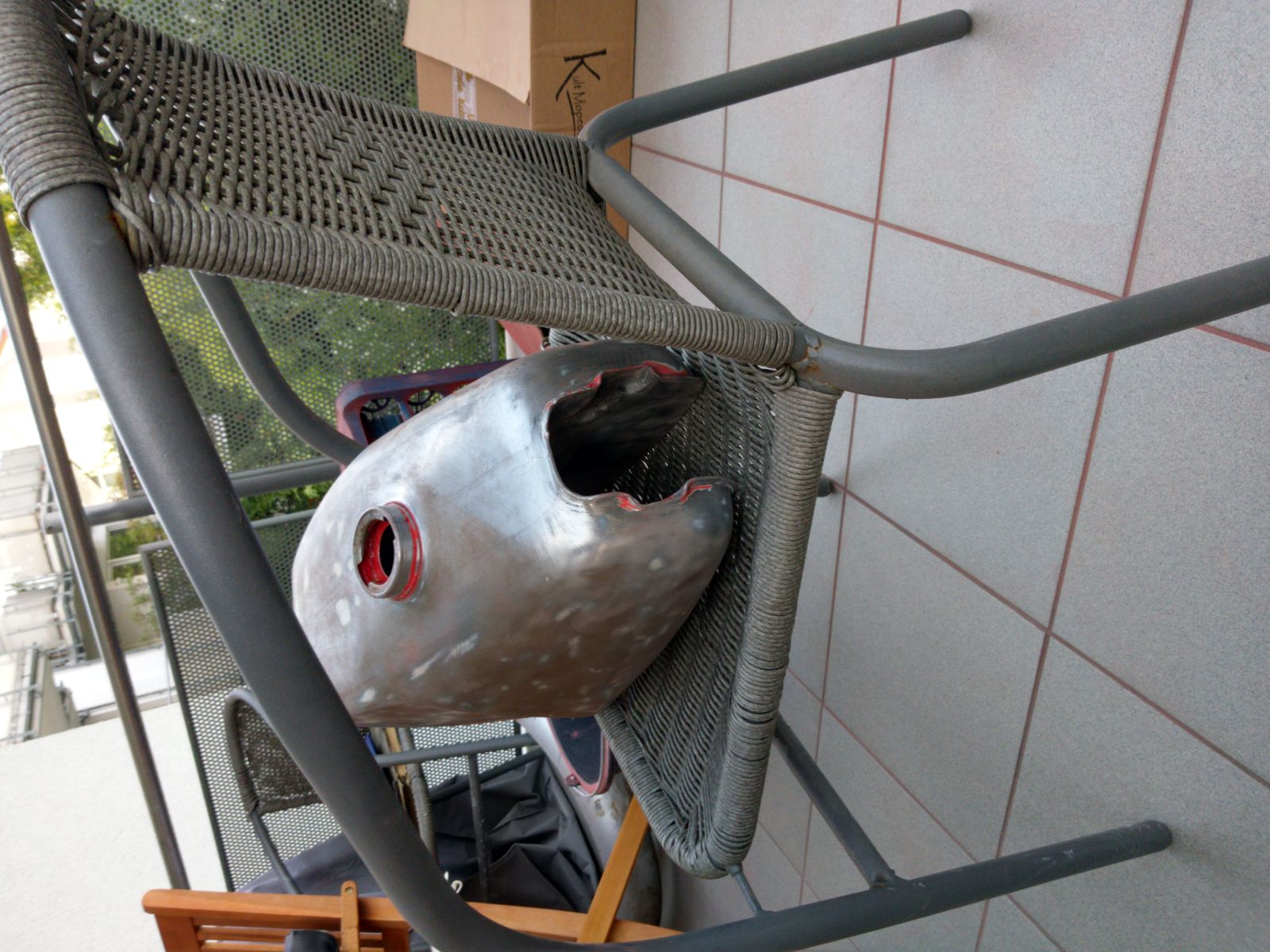Habe mir noch 2k Füller besorgt und die Woche nach der Arbeit den Tank mit 40er-120er Schleifpapier abgeschliffen. Es fehlen noch ein paar kleinere stellen. Siehe angehängte Bilder. Kann sie von Handy leider nicht direkt in den Post packen.