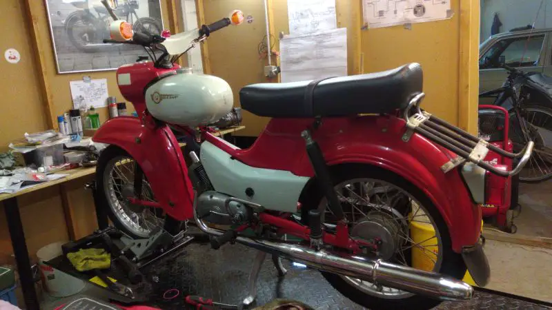 Aber dazu schreib ich nochmal einen anderen Beitrag. Diese Probefahrt offenbahrte noch ein paar kleine Mängel und endete damit, daß das Moped ein "kleines" Stück des Weges in die Garage zurück geschoben werden durfte. Die meisten dieser Mängel sind behoben aber ein Problem will sich einfach nicht lösen lassen. Das Rücklicht brennt nicht.