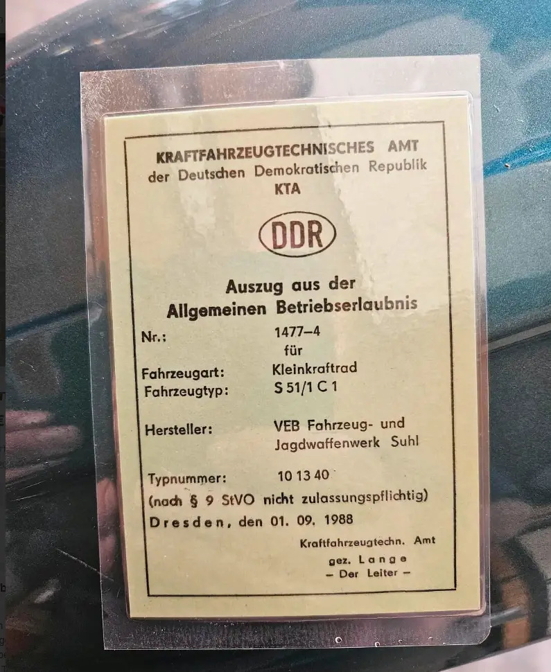 Ne, aber es gibt keine Kba 60kmh Papiere mehr.