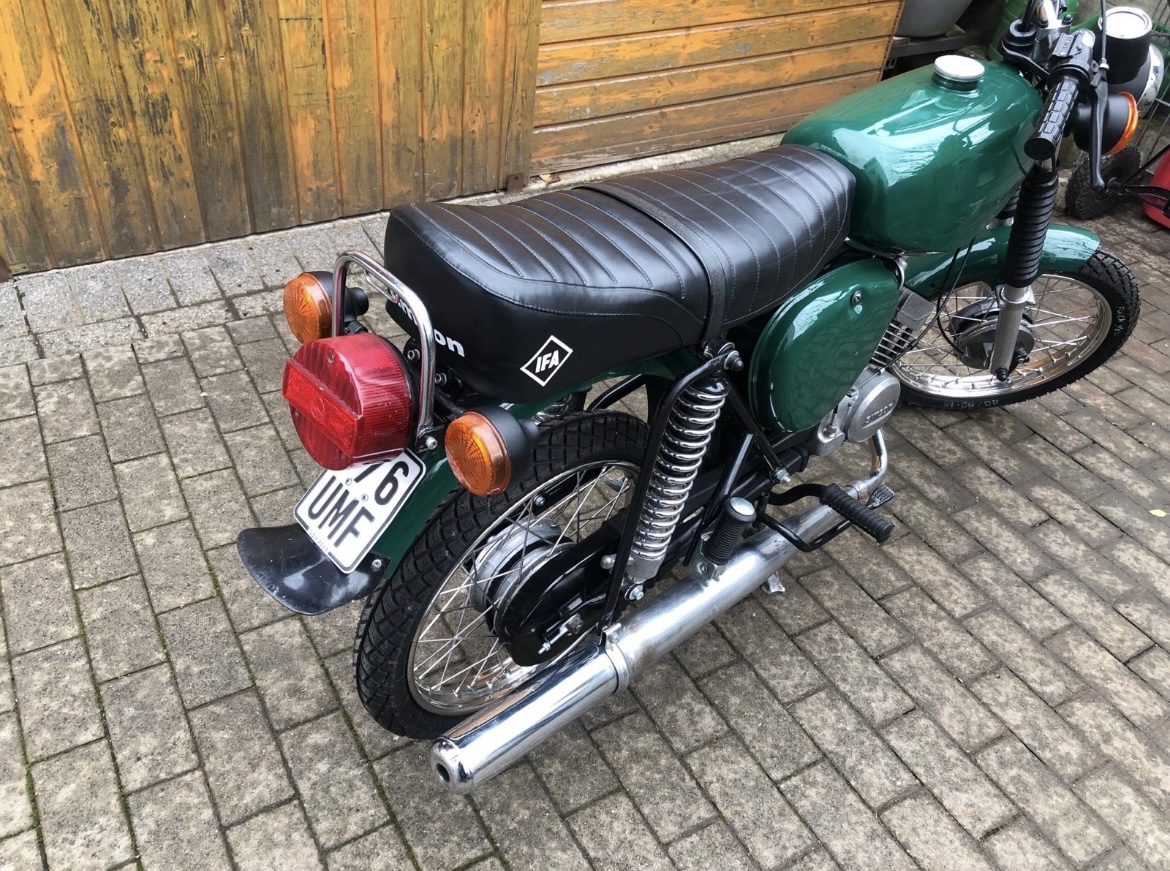 Vape, generell neu aufgebaut (entrostet und von Fachmann komplett lackiert), Motor trocken und volle Leistung, Original DDR Zylinder und Zylinderkopf (neuer Kolben wurde passend eingeschliffen), es wurden wohl keine polnischen oder chinesischen Nachbauteile verwendet, Ölwechsel gemacht, Kette/Ritzel/Vergaser neu, neue Radlager