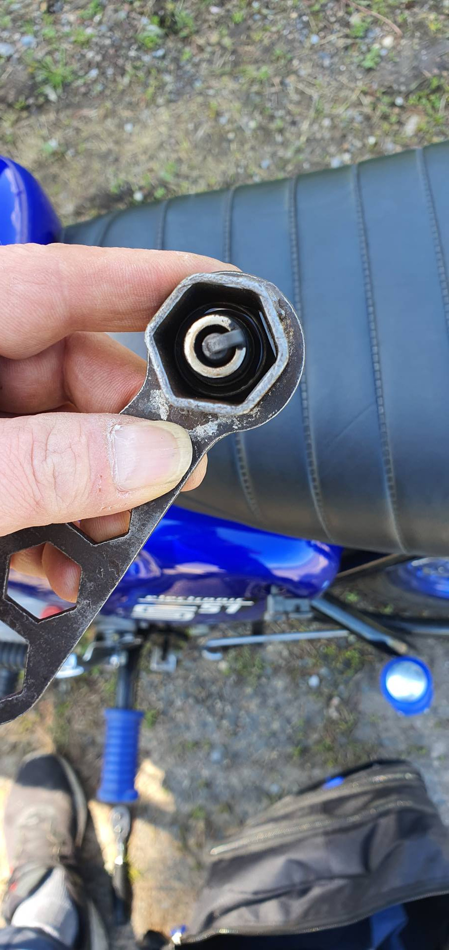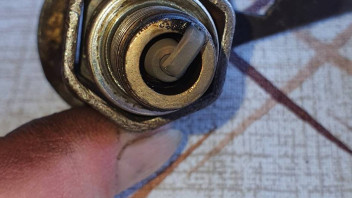 Und zwar bin ich jetzt am Einfahren und habe die Zündkerze mal rausgeschraubt und sie mir angesehen. Kann damit aber nicht wirklich was anfangen.