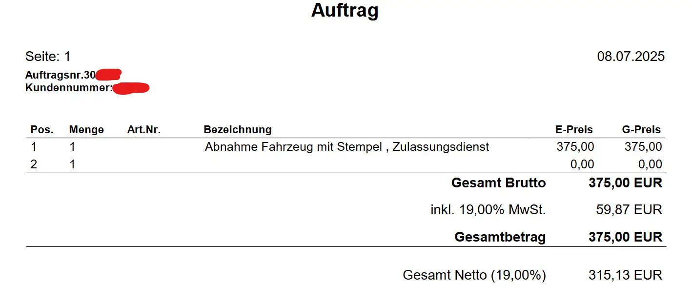 Zumindest steht im Auftrag: Erstellung Papiere mit Abstemplung einer Zulassungsstelle.