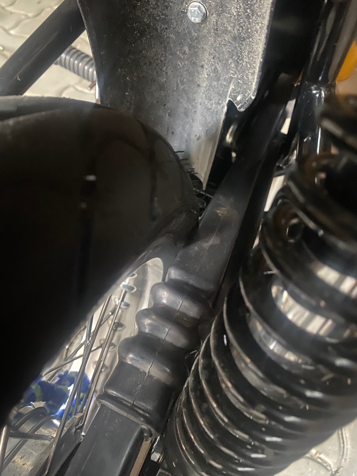 Der Reifen schleift auch leicht am Kettenschlauch.