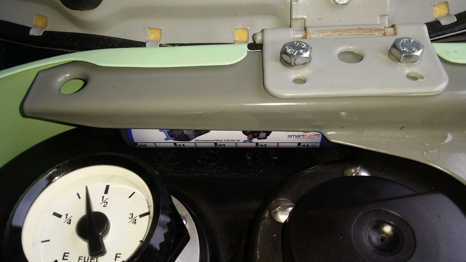 Leider passt jetzt meine Werkzeugtasche nicht mehr hinein, nicht, weil dort kein Platz mehr ist, sondern weil der Platz etwas ungünstig proportioniert ist. Das hätte man ohne Tankanzeige nicht.