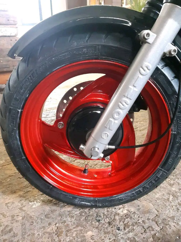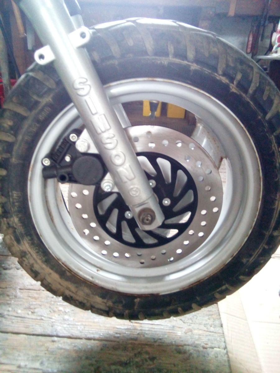 ... hatte die 220er Scheibe zuerst mit den schmalen Felgen eintragen lassen und zwei Jahre später dann die Felgen. Aber ja, ist alles eingetragen. auch der 120er Hinterreifen