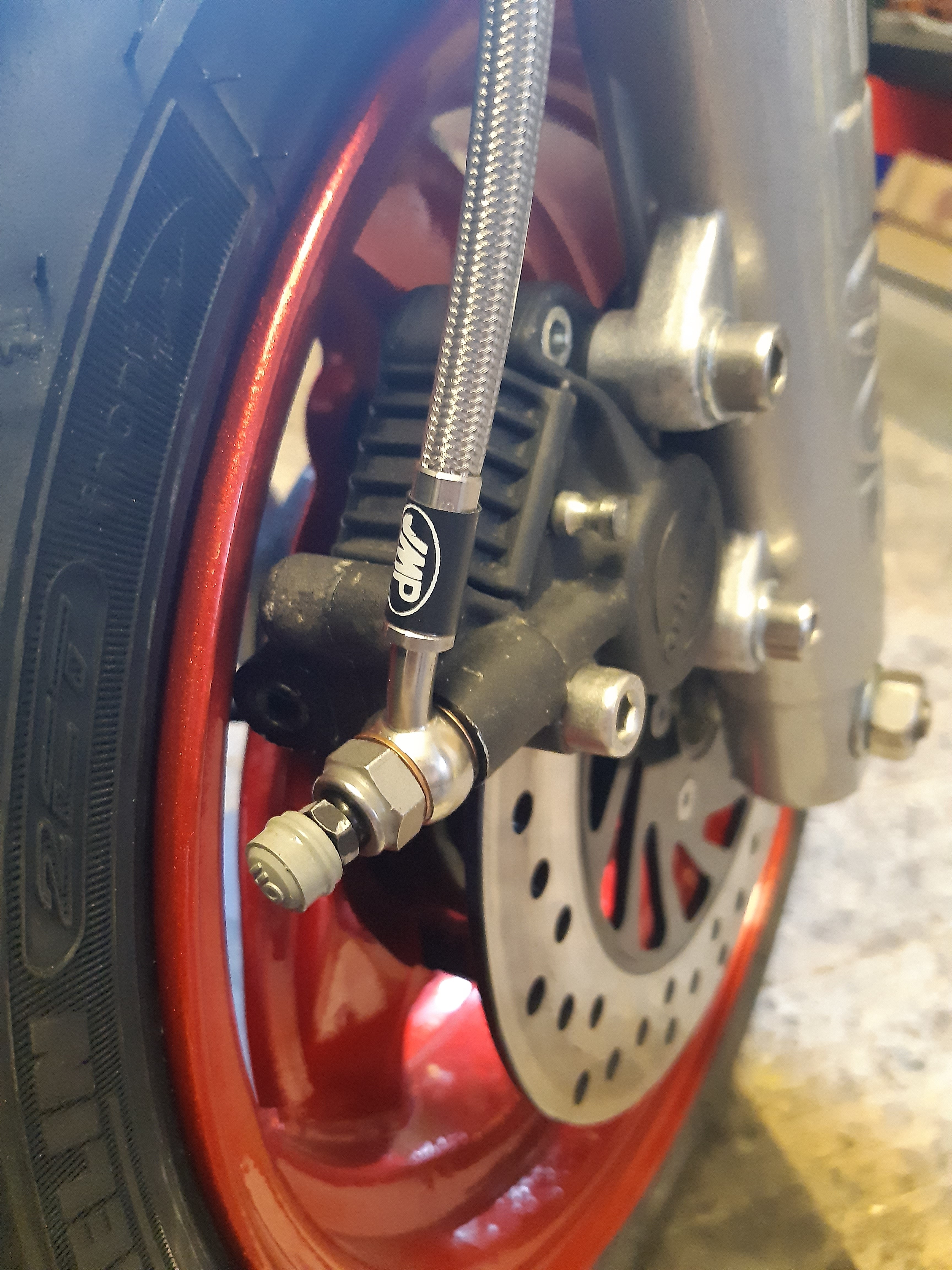 5 mm3 mm sind das schon / für den TÜV hat es gereicht. Mal eben das Vorderrad ein oder ausbauen ist mit der Kombi natürlich absoluter Mist, auch Bremssattel abnehmen geht nicht bei eingebautem Rad - aber das nimmt man in Kauf.SRA-Gabelbrücke - geht bestimmt irgendwie, sieht aber schei... aus. Die Brücken sind breiter und müssten dann schon an die Kniebleche stoßen. Vorlauf der Brücke weiß ich jetzt nicht - könnte aber auch anders sein. Das Stirnrohr war meine ich auch viel länger - hätte beim Roller gar nicht gepasst. Und am Ende passen die Scheinwerfermaske und das schöne orginale Schutzblech auch nicht mehr - da muss man dann auch auf das komische SRA Teil zurückgreifen. Und wie man sieht ist das auch völlig unnötig.
