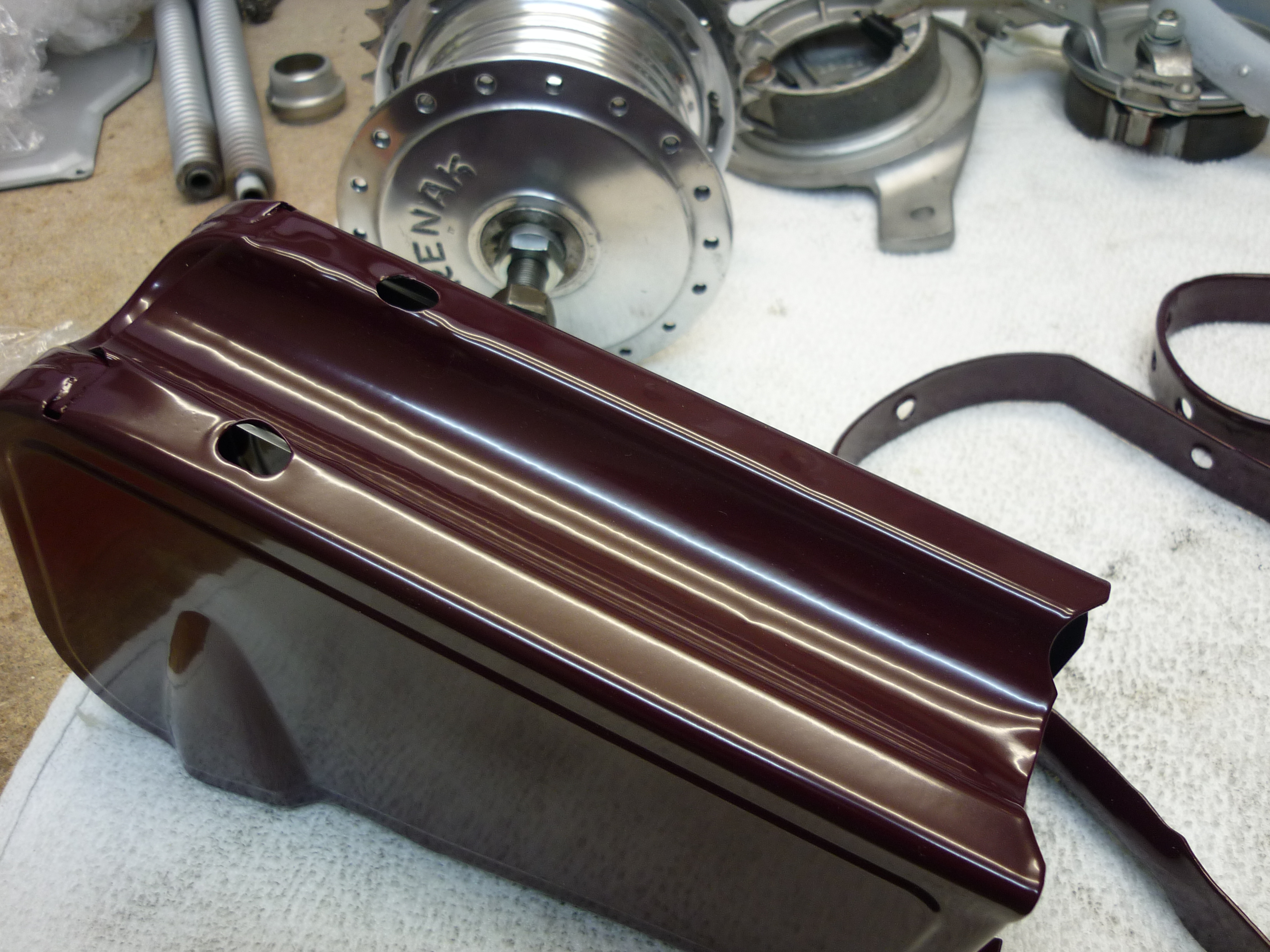 Die Radlager habe ich wieder hergestellt wie sie waren. Ich musste nur neue Kugeln kaufen. Bei den Reifen dachte ich mir, die gehen wohl erst mal. Viele Kilometer wird der SR wahrscheinlich nicht machen. Weißwandreifen habe ich bei lackierten Felgen noch nicht gesehen. Die waren auf den Bildern alle schwarz.