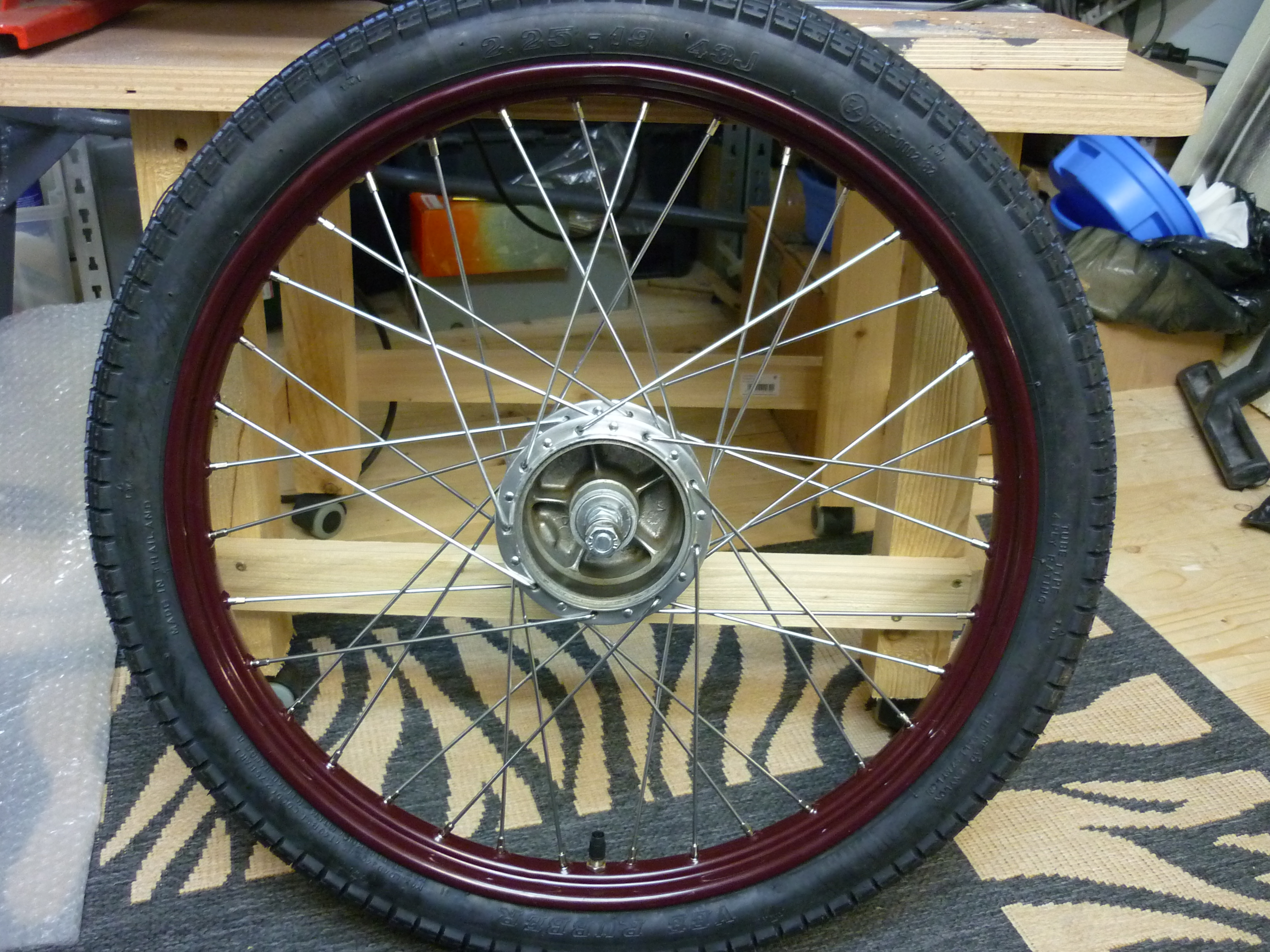 Des weiteren sich nun die Räder eingespeicht, grob ausgerichtet und die Reifen aufgezogen. -