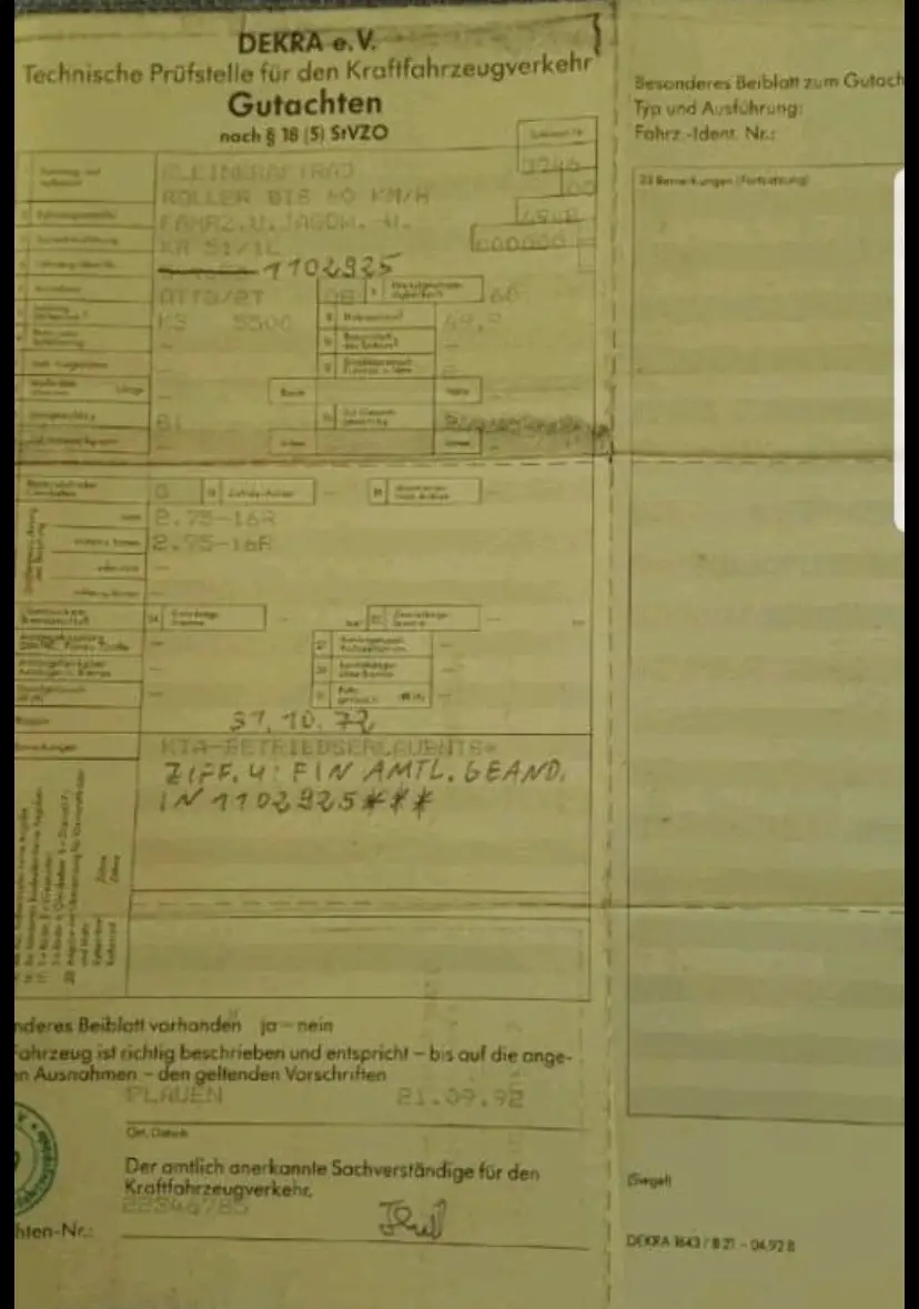 Ich "Sammle" ehr andere BE`s, sowas wie 60Km/h und es steht Leichtkraftrad drin, zb. sowas Rahmen als Ersatzteil - Meine Odyssee