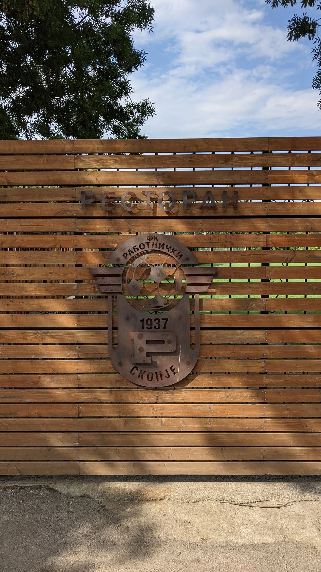 FK Rabotnički hat seinen Shop direkt am Trainingsgelände. Natürlich geschlossen, aber Fabi kam mit dem Koch des Vereinsheims ins Gespräch, ich wollte schon aufgeben, der versicherte uns Abends wäre jemand da.