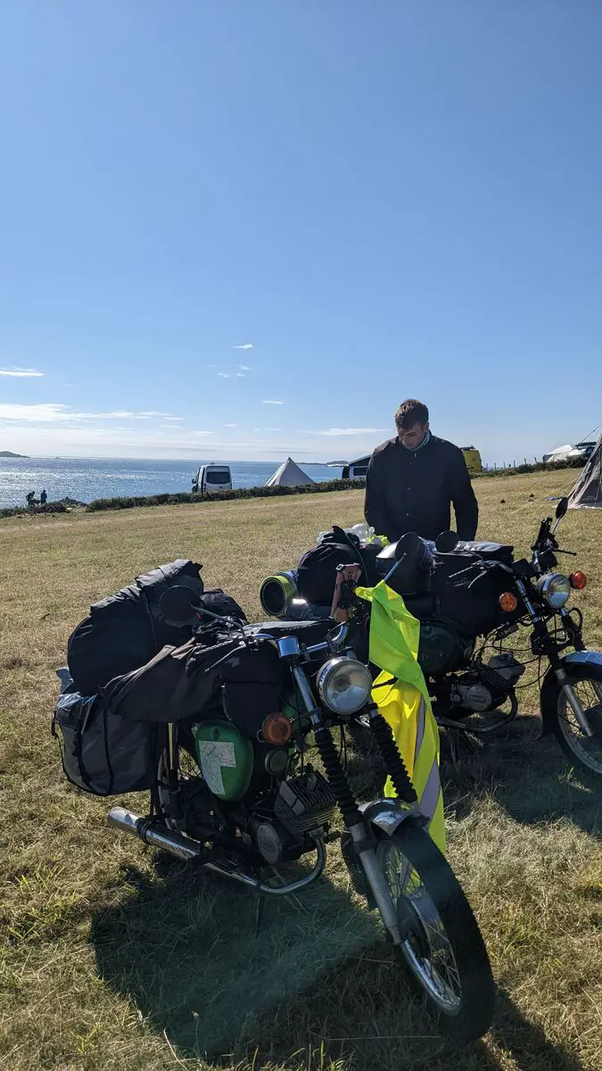 Also schön das nasse Zelt eingepackt, die feuchten Klamotten angezogen. Darüber natürlich direkt die Regenkombi. Das ganze nasse Zeug inkl. uns auf die nassen Mopeds gepackt und los.