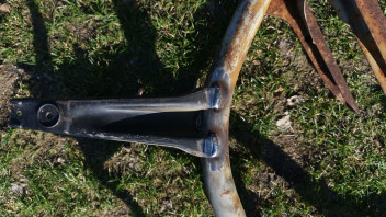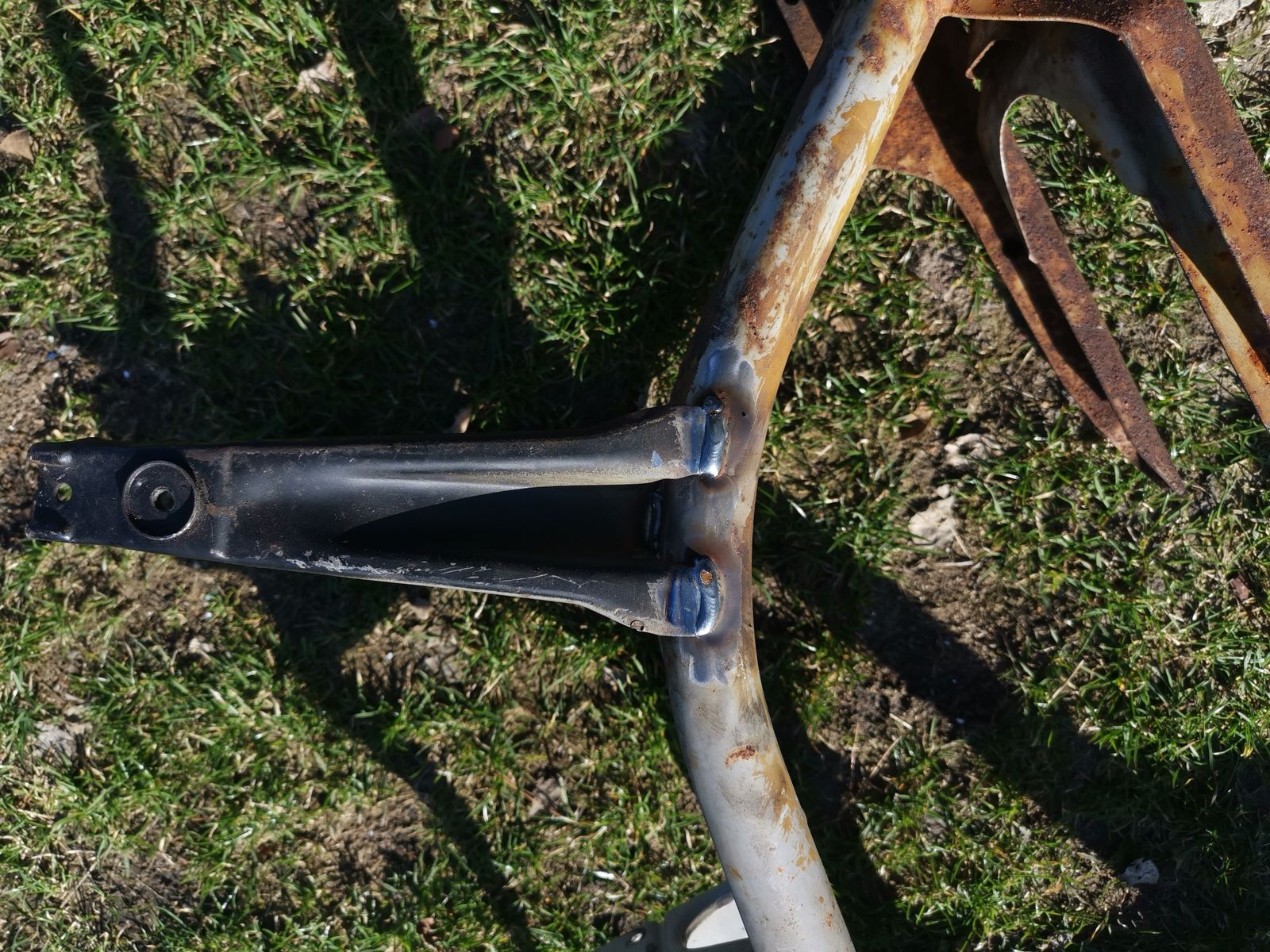 Die tote Schwalbe bekommt die ausgebeulte rostige und mit Owatol konservierte Verkleidung.