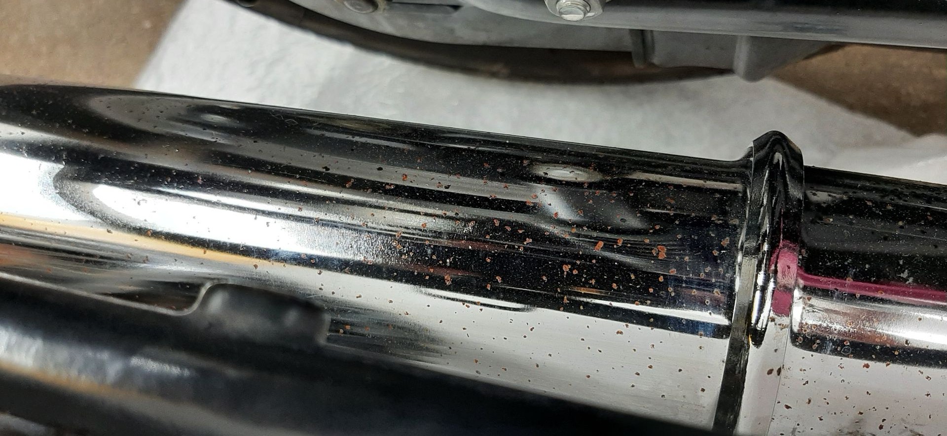 Du könntest die kleinen Rostpickelchen auch mit Stahlwolle entfernen und die Teile danach mit der Poliermaschine aufpolieren. Dann ganz leicht einölen. Damit hab ich schon Chromteile gerettet, die jeder vernünftige Mensch verschrottet hätte.