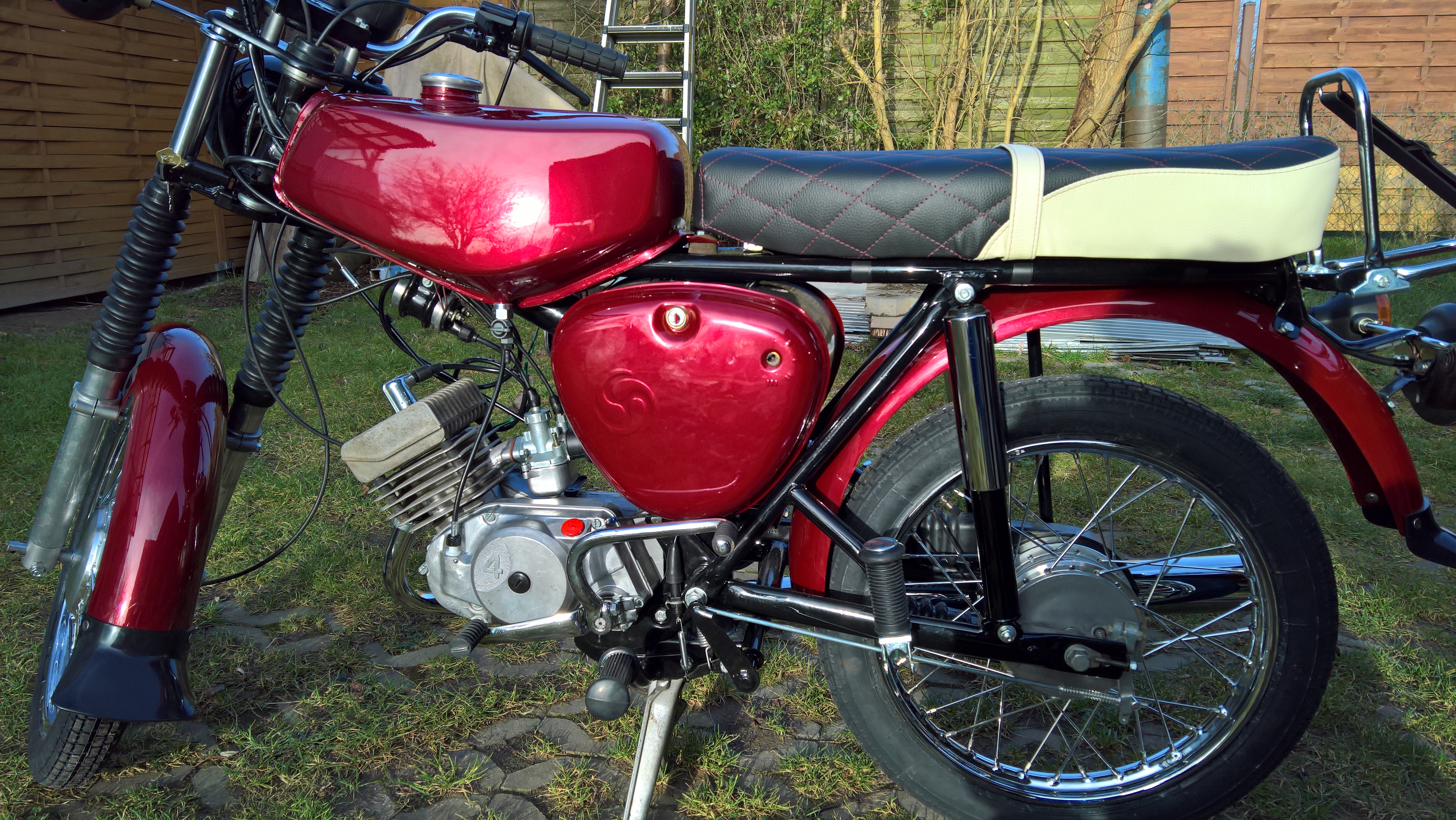 Die einzige Farbe für so S Klasse ist gelb. So wie meine war. Ist von Motoradfahrern fotographiert worden weil se geil aussah. Dieses Schickimicki mettalic gehört da nicht dran. ist ja kein Baumarktscooter.