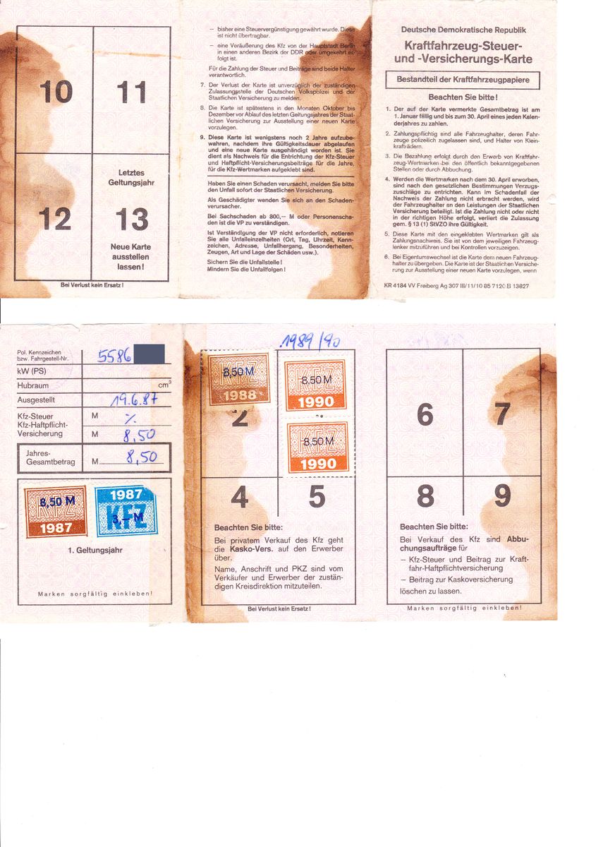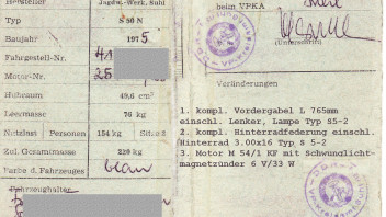 Der Austauschrahmen wurde zu DDR-Zeiten jedoch nicht in den Registrierschein eingetragen, sonder nur die Versicherungspapiere wurden mit der neuen Rahmennummer ausgehändigt.