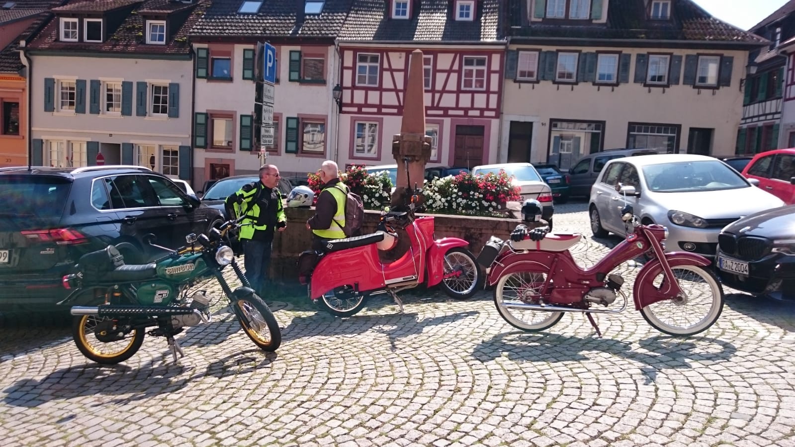 mit unseren Mopeds (Simson Schwalbe, DKW Hummel und Simson S51)