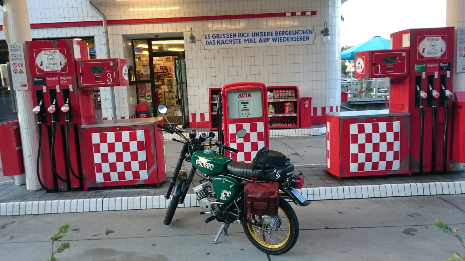 Hier ist direkt an der B28 die AVIA Retrotankstelle