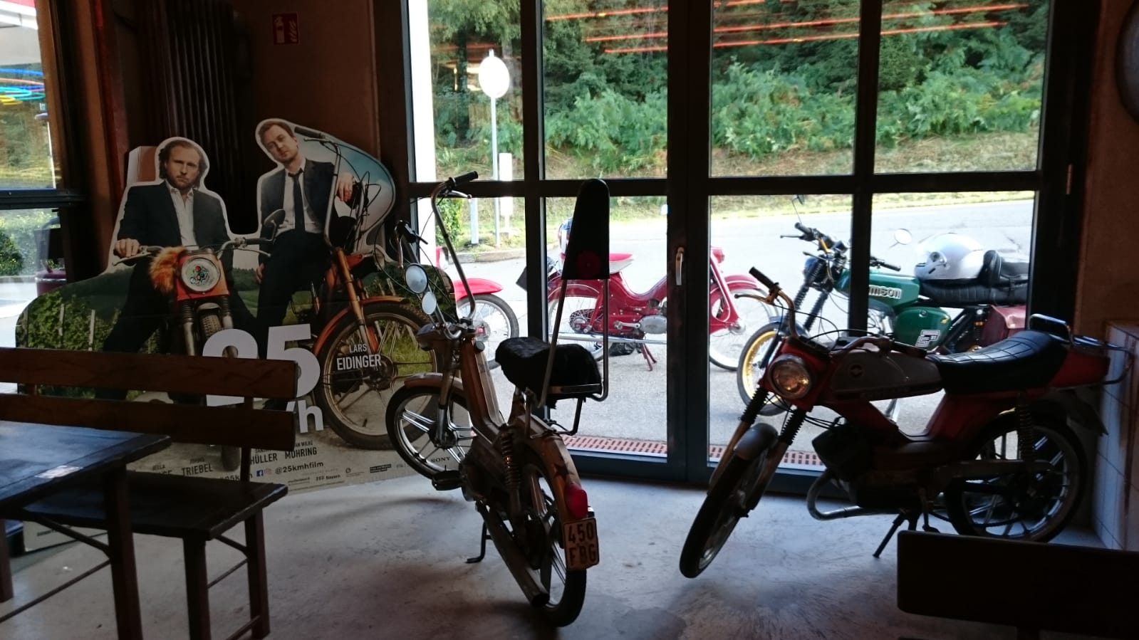 In dieser Tankstelle sind auch 2 (von 5) der Film-Mofas ausgestellt.
