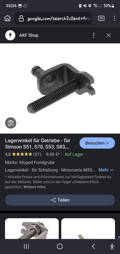 Hi Leute, ich muss mich mal an euch wenden, da ich nicht mehr weiter komme. Und zwar habe ich mir von ZT Tuning ein 5-Gang-Getriebe mit kurzen 1. Gang geholt. Habe jetzt aber große Probleme beim Einstellen. Erster und Zweiter Gang lassen sich einstellen, aber ab Gang 3 geht nichts mehr. Ich musste auch die Schlitzschraube ganz nach rechts zum Anschlag drehen, damit ich überhaupt in den ersten Gang gekommen bin. Mir ist noch aufgefallen, dass wenn ich im ersten Gang bin, dass es bei mir wie auf dem Bild aussieht. Die Schaltklaue hatte ich auch schon bearbeitet (1,5mm weggefeilt) und auch die Kontermutter hinter der Schlitzmutter am Lagerwinkel. Aber irgendwie sieht es komisch aus.
