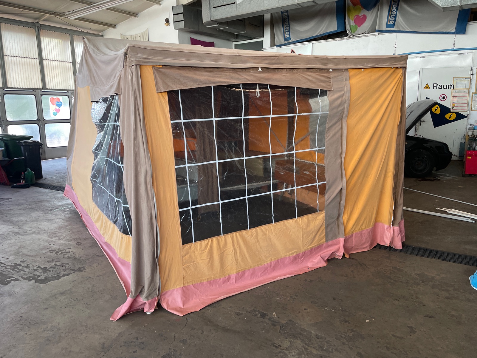 Jetzt sind noch 3 Stellen zu nähen. Dann heißt es imprägnieren, sauber machen und einräumen. Matratze bekomme ich voraussichtlich diese Woche.
