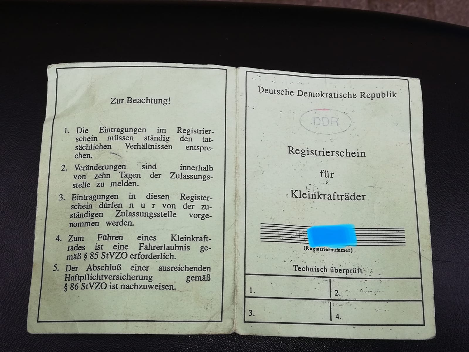 Und seit 1983 gabe es diese Registrierscheine schon nicht mehr.........
